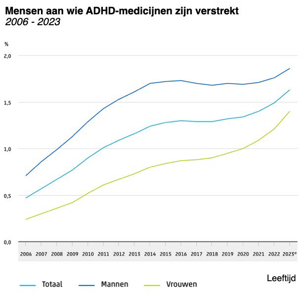 - bron: CBS [https://www.cbs.nl/nl-nl/nieuws/2025/29/verstrekking-adhd-middelen-sinds-2006-verviervoudigd?] ↩︎
