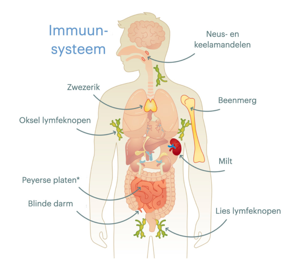 Het bestaat uit talloze organen en weefsels die allemaal betrokken zijn bij dit o zo belangrijke systeem, zoals: