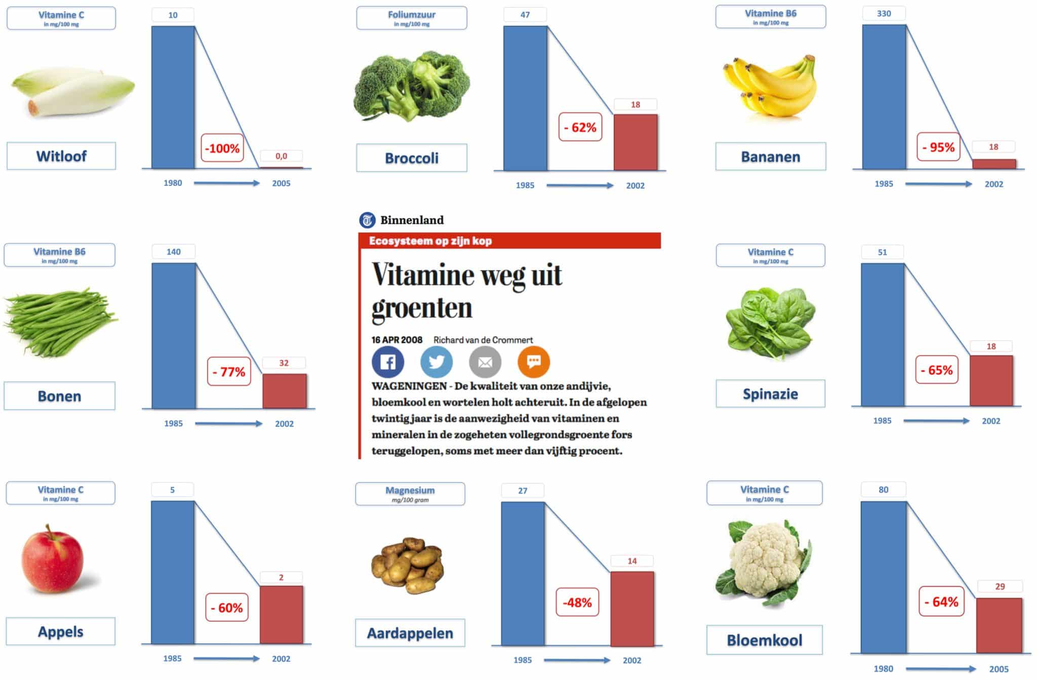 Door de intensieve en chemische georiënteerde landbouw, de vroege oogst en de industriële voedselbereiding, bevat onze voeding nog maar een fractie van de vitaminen en mineralen die je dagelijks nodig hebt.