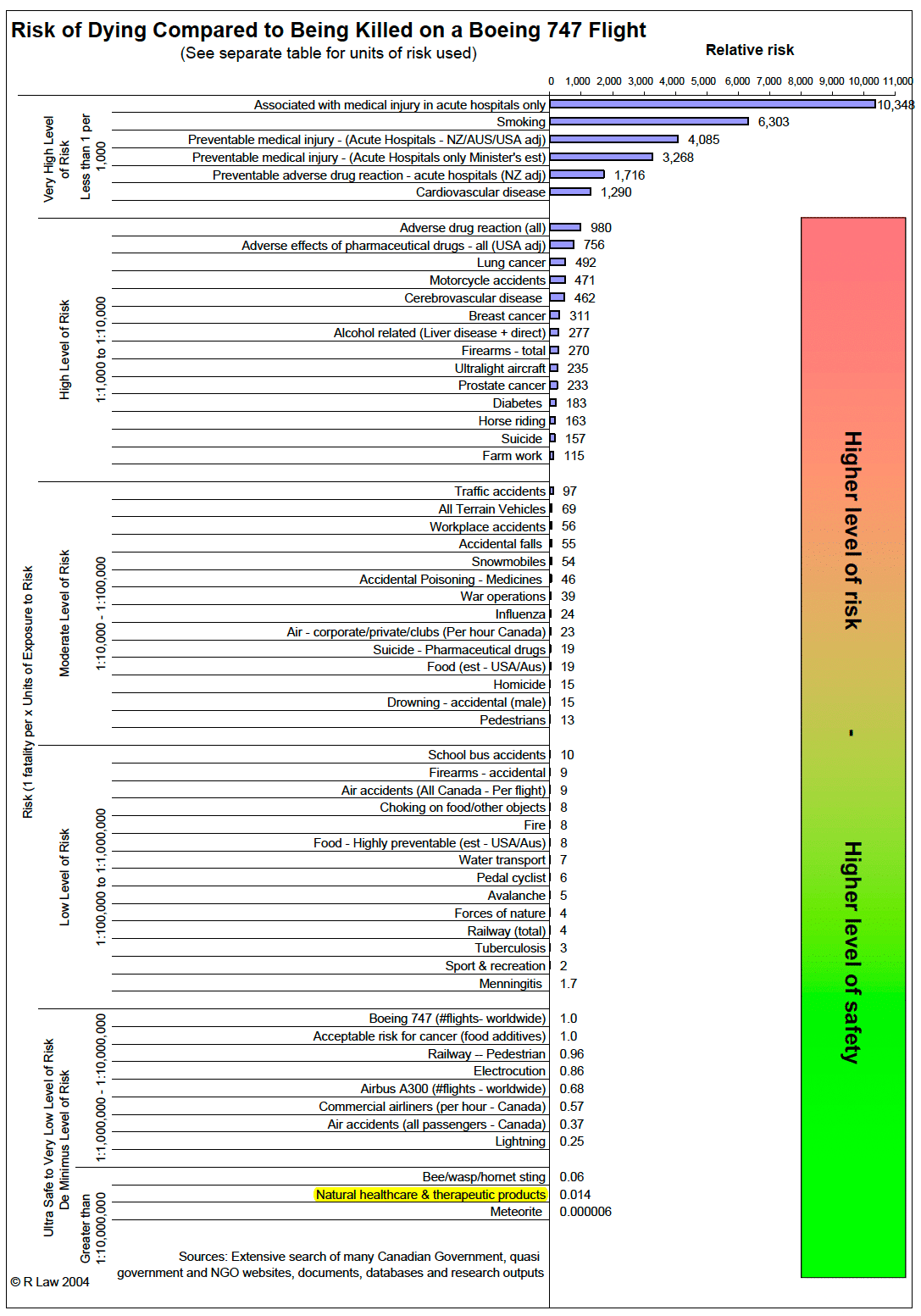 De kans om te sterven aan natuurlijke gezondheids- en therapeutische producten staat bijna onderaan de lijst met een verwaarloosbare kans van 0,014.
