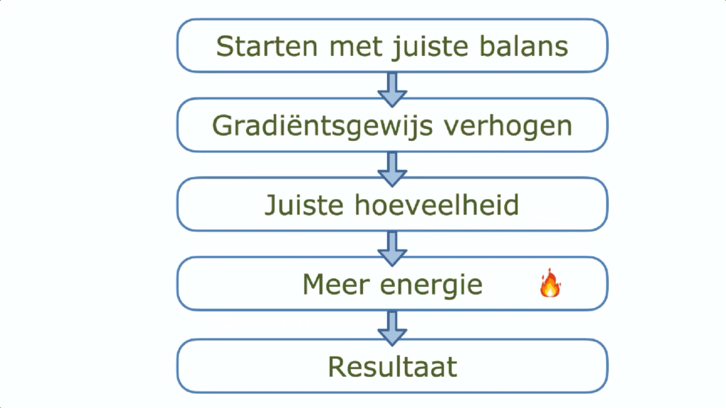 De juiste hoeveelheid bepaal je door deze stap voor stap op een gradiënt te verhogen.