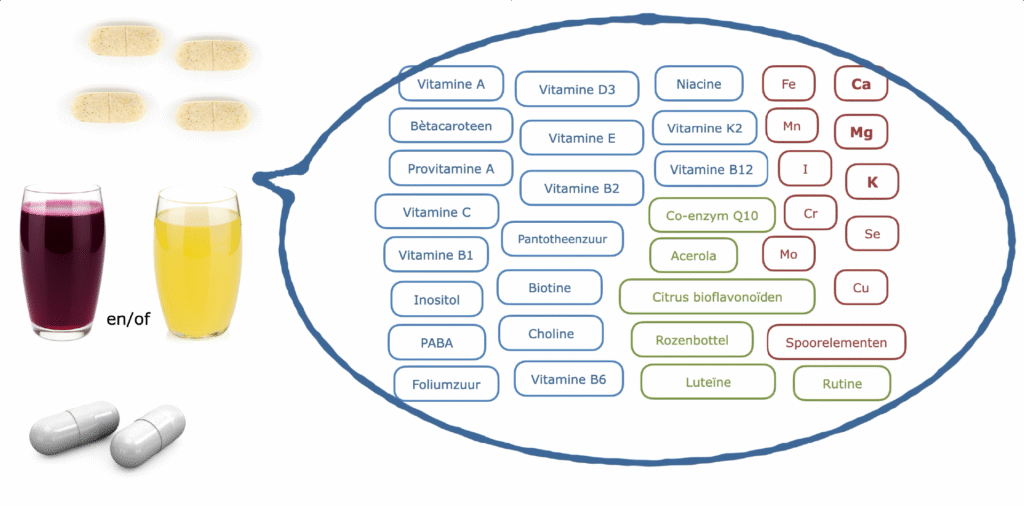 Om dat te achterhalen is al een studie op zich en wie heeft daar vandaag de dag nog tijd voor? Deze Formule bestaat uit de eerder genoemde essentiële vitaminen en mineralen.