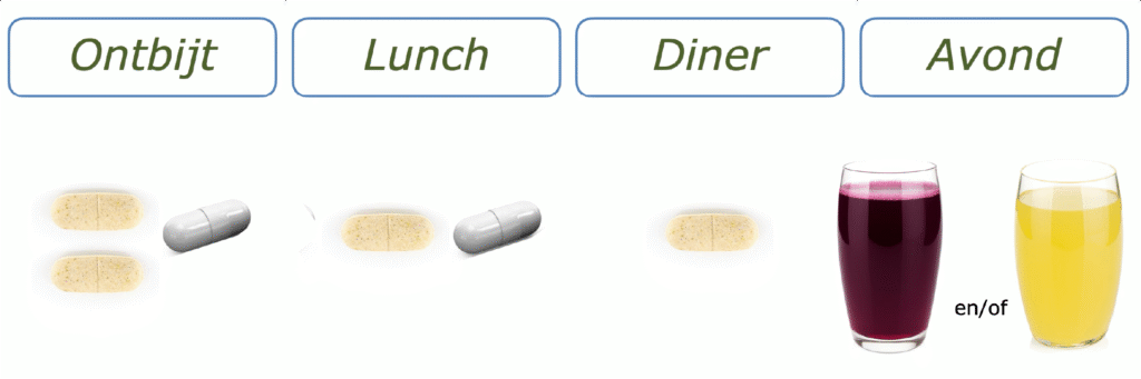 Voor een goed resultaat zou de basis moeten bestaan uit een dagelijkse ondersteuning met alle vitaminen, mineralen en spoorelementen, in de juiste balans en hoeveelheid.