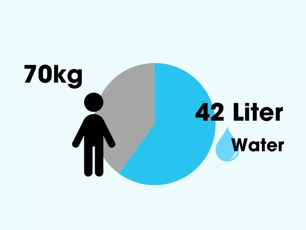 - 120 kg: 4,3 liter water = circa 17 glazen
