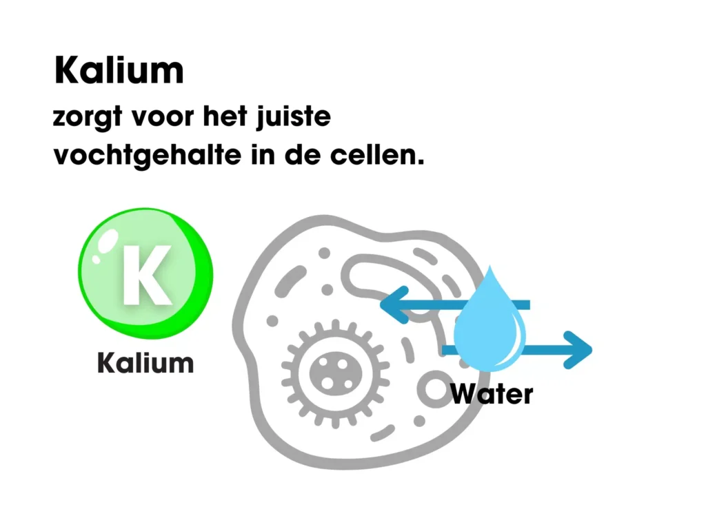 - Kalium zorgt voor het juiste vochtgehalte in de cellen.