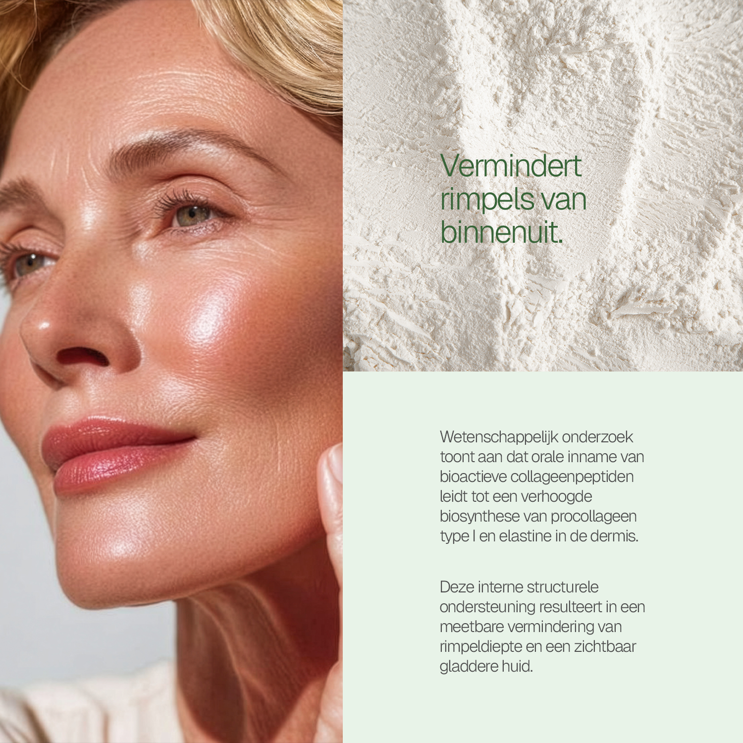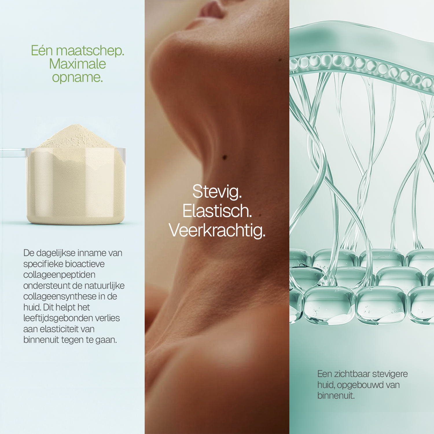 Om je lichaam jong, stevig en elastisch te houden is het van belang om de hoeveelheid en kwaliteit van het collageen in je lichaam op peil te houden. Collageen van goede kwaliteit zorgt voor een jeugdig en flexibel lichaam, zelfs tot op hoge leeftijd. Als je jong bent is de aanmaak van collageen optimaal, maar vanaf je dertigste levensjaar gaat de aanmaak langzaam maar zeker achteruit. Maar wat je leeftijd ook is, het belangrijkste is dat je lichaam de bouwstenen krijgt om collageen aan te maken en voldoende vitaminen en mineralen om de kwaliteit ervan te waarborgen.