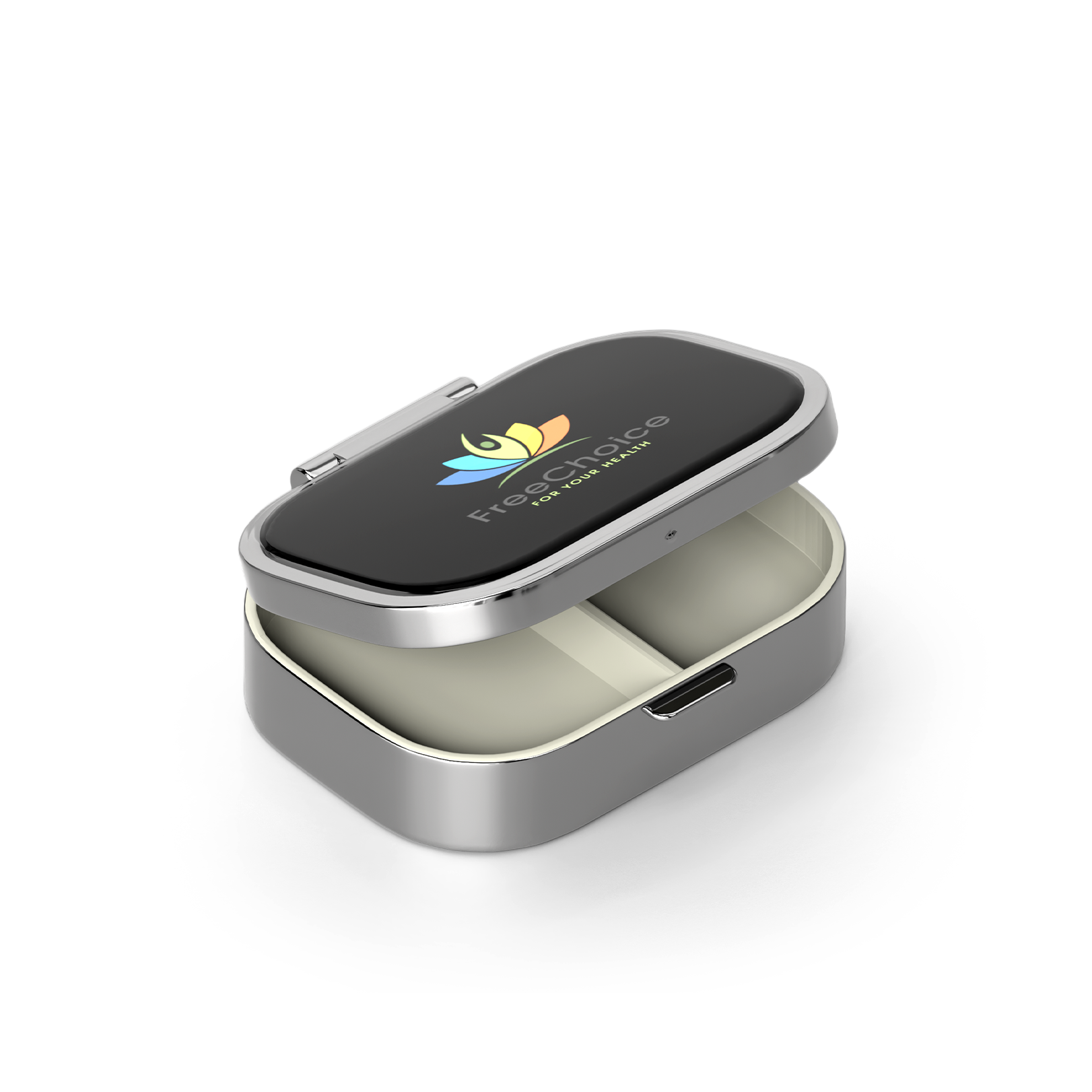 Met dit stijlvolle vitaminedoosje kun je de tabletten en capsules meenemen naar je werk of als je op stap gaat.