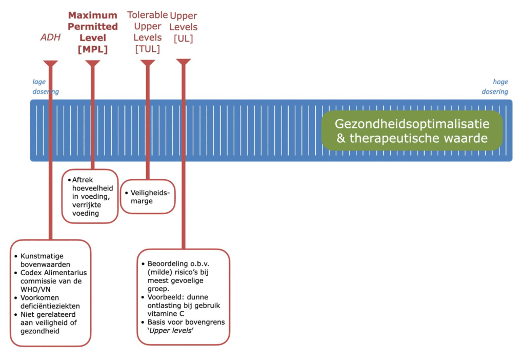 EFSA werkt met wat de ‘Tolerable Upper Intake Level’ (Aanvaardbare bovengrens) wordt genoemd, afgekort als TUL. Dat is simpel gezegd de hoogste dosering van een vitamine of mineraal die iemand dagelijks kan innemen zonder dat er naar verwachting ook maar enig risico kan ontstaan voor een klein deel in de bevolking.