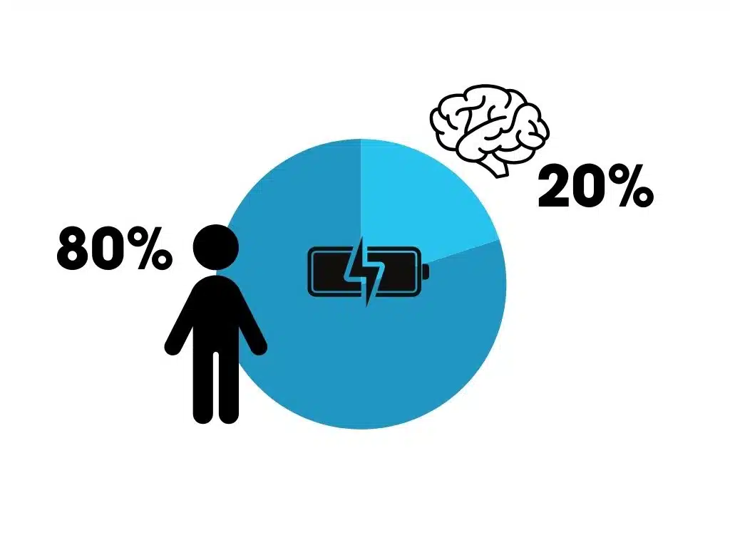 De hersenen vertegenwoordigen slechts 2% van ons gewicht, maar nemen wel zo’n 20% van de totale energie op die het lichaam nodig heeft. Deze grote hoeveelheden energie zijn nodig voor een goede uitvoering van de gespecialiseerde functies van de biljoenen zenuwcellen.